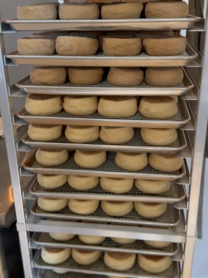 Our nice and fluffy english muffins are made in small batches by hand in our home-based bakery. Whether slathered in butter and jelly, topped with eggs and bacon, or leveling up your burgers, we’re confident you won’t find a better english muffin!